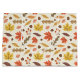 This design showcases a lively autumn-themed pattern featuring a variety of colourful leaves and acorns. The background is a light cream colour with subtle speckles, adding texture and depth to the design. The pattern includes maple leaves in vibrant shades of red, yellow, and orange, along with other leaves in warm browns, muted greens, and soft pinks. Scattered among the leaves are small acorns and clusters of berries, enhancing the fall ambiance. The arrangement is both whimsical and balanced, capturing the cozy and festive spirit of the autumn season.