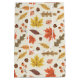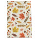 This design showcases a lively autumn-themed pattern featuring a variety of colourful leaves and acorns. The background is a light cream colour with subtle speckles, adding texture and depth to the design. The pattern includes maple leaves in vibrant shades of red, yellow, and orange, along with other leaves in warm browns, muted greens, and soft pinks. Scattered among the leaves are small acorns and clusters of berries, enhancing the fall ambiance. The arrangement is both whimsical and balanced, capturing the cozy and festive spirit of the autumn season.