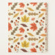 This design showcases a lively autumn-themed pattern featuring a variety of colourful leaves and acorns. The background is a light cream colour with subtle speckles, adding texture and depth to the design. The pattern includes maple leaves in vibrant shades of red, yellow, and orange, along with other leaves in warm browns, muted greens, and soft pinks. Scattered among the leaves are small acorns and clusters of berries, enhancing the fall ambiance. The arrangement is both whimsical and balanced, capturing the cozy and festive spirit of the autumn season.