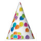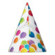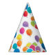 These birthday party hats are covered with colourful balloons in red, blue, green, yellow, orange, and purple. Personalize with the appropriate age of the birthday girl / boy.