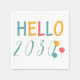Red, blue and yellow orange funny colourful paper napkin with Hello 2018 modern typography script. Perfect for your New Year's Eve party!