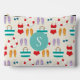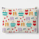 Colourful and modern beach holiday icon pattern on personalised travel pouch.