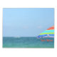 Picture yourself under this bright colourful beach umbrella lookin at a tropical sea with an approaching boat. Customize with your name there and your notes will say it all!