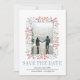 Berries and leaves border winter dusty blue wedding Save the Date announcement. The front of this lovely announcement features a frame made of berries and leaves, the text "Save the Date" in dusty blue and your photo. The back is of solid dusty blue colour.