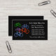 Bright and colourful bicycles in red, green, blue, and purple decorate the left side of this business card. The right side holds your easily customized business text in white. The images and text are placed on a dramatic black background. The back of the card is also black, with an extra information field if you need it. Perfect for any business that is centred around bicycles, or just for fun!