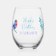Colourful Bird Blue Forget Me Not Flower Birthday Stemless Wine Glass