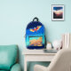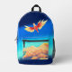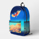 Wearable Art: Colourful bird flying above the mountains Printed Backpack