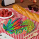 These paper plates feature a vibrant abstract image of a Bird of Paradise flower surrounded by tropical foliage. These colourful flower and tropical palm leaf plates showcase the beauty of the Hawaiian island paradise where these beautiful flowers are found.