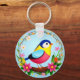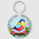 Colourful Bird Surrounded by Flower Wreath Keychain