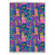 Colourful retro pattern cartoon style with cats birds and flowers in pink blue and green colours greeting card. Available on other products, and can be requested on any product offered at Zazzle.