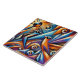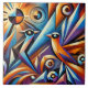 Vivid depiction of birds crafted in a geometric abstract design, featuring vibrant shades and artistic patterns, evoking creativity and modern aesthetics suitable for various artistic or contemporary themes.