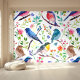 Papier Peint Oiseaux colorés et Fleurs Whimsical Motif