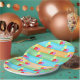 Paper plates to brighten up any occasion with a modern and colourful party balloons pattern.