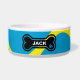 Colourful blue and yellow personalized pet bowl with bone, customize with any pets name, change the type when you order