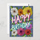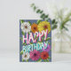 Colourful Blue Floral Personalized Happy Birthday Postcard
