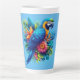 Colourful, blue tropical macaw latte mug