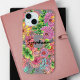 This floral customizable iPhone case seamlessly blends contemporary style with a touch of vintage charm. Vibrant and warm hues dominate the palette, including shades of pink, green, orange, and subtle blues. The grey background provides a neutral base, allowing the floral colours to pop. The intricate floral pattern draws inspiration from traditional paisley motifs. It combines organic forms with a bohemian flair, reminiscent of the flower power movement of the 1960s. The design strikes a balance between elegance and free-spirited vibes.