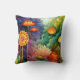 Bright and beautiful, this large flowered design highlights the pillow and pulls the room together. The flower symbolizes friendship, happiness, and well-being. These flowers have an abstract futuristic vibe to them.