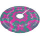 A fabulous Christmas tree skirt with a boho hippie appearance. In trendy pink and green, the patterned tree skirt displays the words 'Merry Christmas' in elegant script typography. Personalize with your name or other text, which will appear three times at the edge of the tree skirt.