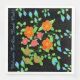 A colourful floral art print designed paper book club napkin. Text can be personalized or text is removable. The licorice black background can be changed to any colour to suit your decor, or special event. The Flower image can be changed to your own photographs.