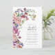 This Colourful Bridal Brunch Invitation showcases a symphony of vibrant jewel-toned wildflowers meticulously detailed in stunning shades of purple, magenta, burgundy, blush pink, dusty blue, and lush sage greenery. The hand-painted watercolor texture contributes a unique character to every piece, ensuring your invitations are truly one-of-a-kind. Get ready to capture the joy and excitement of your upcoming spring or summer bridal shower with these colourful and elegant floral invitations.