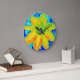 A beautiful bright colourful clematis flower of yellow, orange and green against a vibrant background of aqua and blue adorns this floral acrylic wall clock. This image is digitally manipulated original photography by JLW_PHOTOGRAPHY.