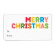 Capture the joy and magic of the holiday season with this unique and festive, colourful & bright Merry Christmas rectangular gift label. Its simple yet fun design features a rainbow colour palette of red, green, yellow, blue, orange, and pink, creating a vibrant and cheerful atmosphere. The creative and minimalist approach, with bold typography, adds an original and trendy touch. Perfect for children and kids at heart, this design embraces a light and casual feel, spreading happiness with its cheerful wording. Celebrate December in style with this delightful greeting!