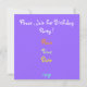 Colourful bubbles against violet background .Cheerful invitation card for kids' occasions /announcements .You can change all the text both sides .This way it is suitable for any age or party /annoucements .Custom invitation template by Alma Wad . See matching stamp :