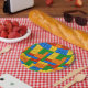 Great for birthdays! Colourful blocks in red, orange, blue, yellow and green.