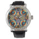 This men's watch has a Bauhaus design of different groups of concentric circles in 1970s colours.