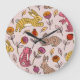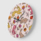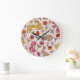 Colourful Bunnies: Cute Floral Vintage. Large Clock