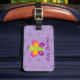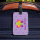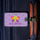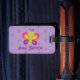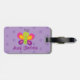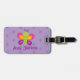Personalized luggage tag featuring a colourful butterfly with a beautiful purple floral background. Cute and fun design for special for girls. Custom monogrammed gift.