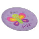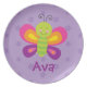 Personalized Melamine Plate featuring a colourful butterfly with a beautiful purple floral background. Cute and fun design for special for girls. Custom monogrammed gift.