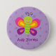 Personalized Button featuring a colourful butterfly with a beautiful purple floral background. Cute and fun design for special for girls. Special for parties and baby showers.
