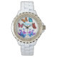Add a vibrant touch to your outfit with this stunning custom women's watch featuring a flurry of colourful butterflies in shades of blue, red, orange, and purple. Set against a bright white face and framed with shimmering rhinestones, this elegant timepiece is both fashionable and personal—customize it with your name for a truly unique accessory. Perfect as a gift or a treat for yourself!