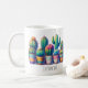 Custom Cactus Mug: Quickly personalize this fun and colourful prickly cactus mug with your gardening or cactus lover's name, or other custom text using our easy to use template. The text colour and style can be further edited using the Design Tool, which can be found in the Personalize section. Immortalize a favourite desert vacation trip, bachelor or bachelorette party, or give it as a gift to your favourite desert gardener or Crazy Cactus Lady! From Heard_. Edited GenerativeContent. #MugCactus #CactusMug #NameMug #PersonalizedMugCactus #MugWithCustom