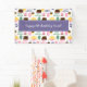Add a custom touch to your child's birthday party with this adorable personalized banner sign. Banner has a pattern of colourful cakes with candles and balloons. Add a custom message, such as happy birthday and your little one's name and age.