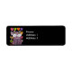 These return address labels have rows of colourful candy hearts with love sayings and a happy purple cat with a white face and green eyes on a black background. Customize your name and address with the template.