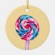 Funky colourful giant lollipop watercolor original art illustration of candy on a stick. Pink, purple and blue.