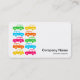 A business/profile card template with a motif made up of ten car symbols in five different alternating colours and travelling in alternating directions.. Company name and business type on the front balanced with the motif on the left. Name an all other contact on the reverse with the motif on the right. Ready to be customized with your details. Could be suitable for a taxi firm, driving school or any car or traffic related business.