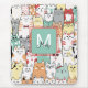 Colourful Cartoon Cat Kitty Name Monogram Mouse Pa Pad