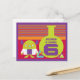 If you would like this design for a different age or would like further changes, please contact us through our Celebration Bazaar store and we will be happy to help with your custom request. A fun and colourful 6th Birthday postacrd featuring a cartoon illustration of a mad scientist with beakers and test tubes filled with bubbling potions and concoctions and a microscope on a colourful background of stripes and circles. There is a large number 6 with customizable text for the name of the birthday boy or birthday girl.