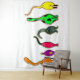 A drawing of six cats showing off their cute butts done in the 1960s pop art style.