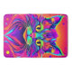A artwork of a colourful cat head with yellow eyes on a purple background (This Design Made With AI). Place Order Today and Embrace the Joy of Shopping!