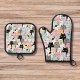 Colourful Cat Pattern Modern Kitty Lover Oven Mitt & Pot Holder Set