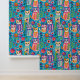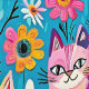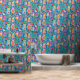 Ai illustration of watercolor folk art cats and flowers in blue, orange, red, purple and pretty bright colours. Add happy and whimsical flare to your room with this peel and stick wallpaper.