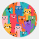 Colourful cats pattern classic round sticker