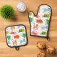 Colourful Cats Pattern Oven Mitt & Pot Holder Set
