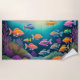 Colourful Chalk Drawing of Fish Reef Scene Beach Towel