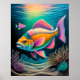 Colourful Chalk Drawing Reef Fish Pink Poster